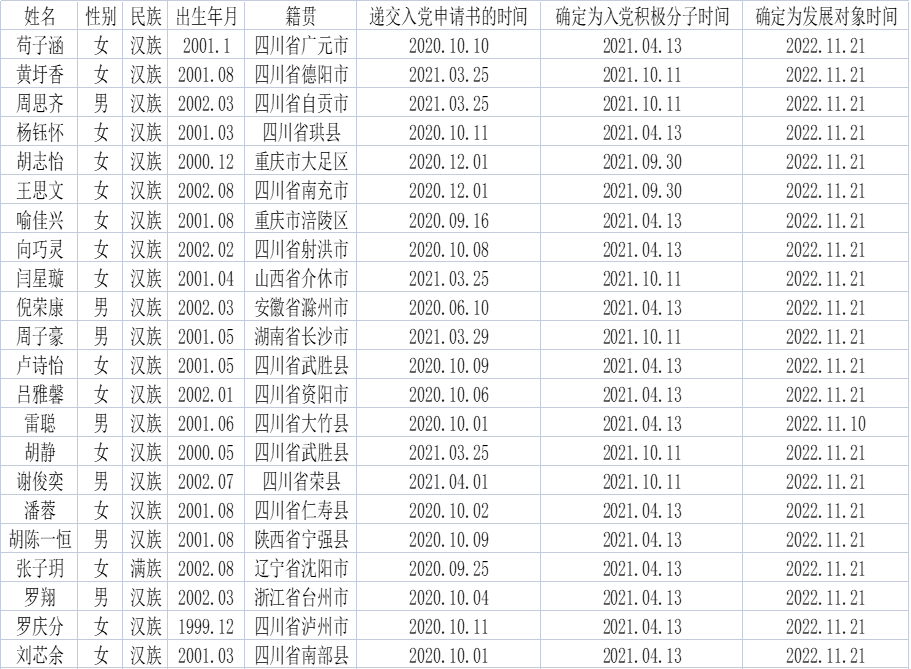 学生第三党支部关于拟接收苟子涵等22名同志确为预备党员的公示